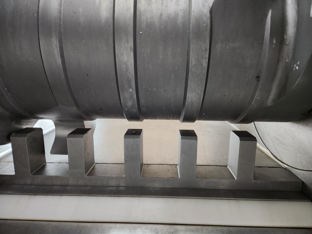 По транспортеру или вручную с помощью специального загрузочного лотка перерабатываемый материал в форме блоков или бесформенных глыб подается в дробилку. Дробильные вальцы в считанные секунды превращают мороженую массу в отдельные кусочки, которые автоматически падают в заранее подготовленную тележку.