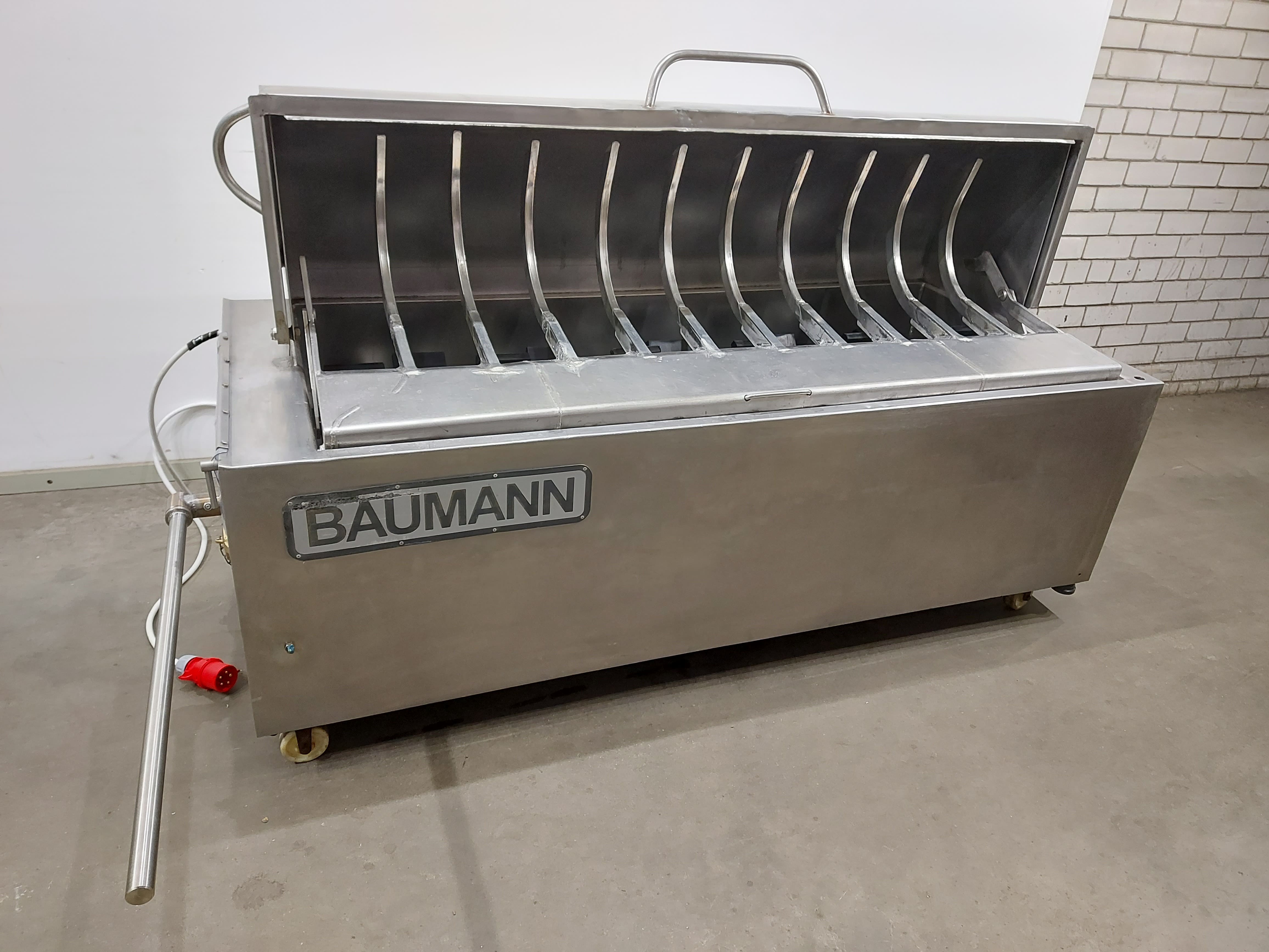 Машина для удаления щетины (шпарчан,скребмашина) Baumann BM 20 представлена компактным прочным корпусом из нержавеющей стали. Благодаря крепким колесикам ее можно быстро и легко перемещать по цеху. Внутри расположен чан, в который помещается тушка, вал для удаления щетины и ее улавливатель. Нагрев воды осуществляется с помощью электрических ТЭнов.