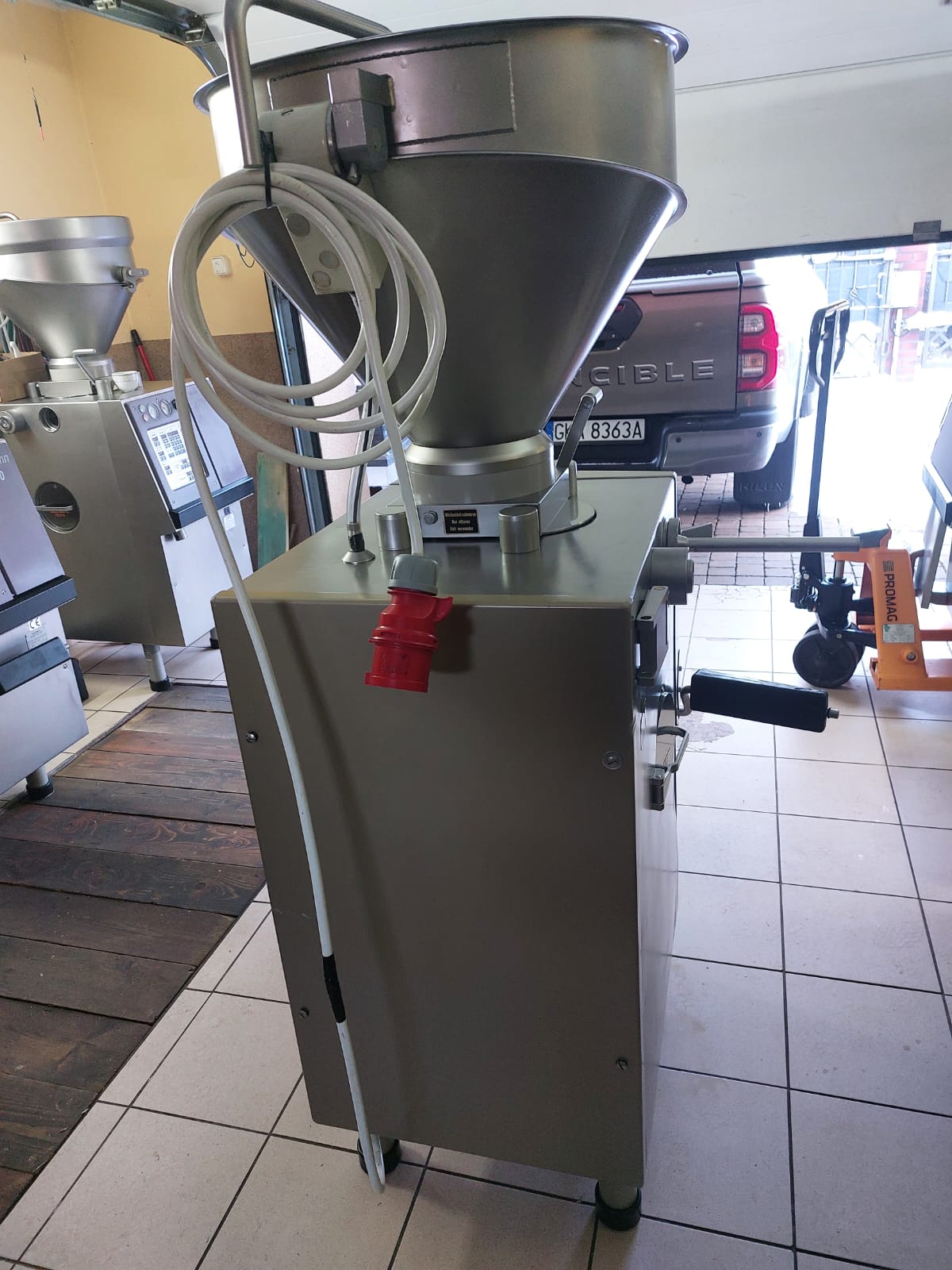 Handtman VF50 - вакуумный колбасный шприц с засыпной корзиной емкостью 50 л. Устройство очень эффективно и идеально подходит для любого завода мясной промышленности, в котором происходит процесс порционирования. Шприц колбасный вакуумный имеет сорость порционирования до 420 порций / мин. Управление устройством осуществляется с помощью панели управления.Шприц колбасный вакуумныйr изготовлен из высококачественных нержавеющих материалов. Производитель также позаботился о простом обслуживании устройства.